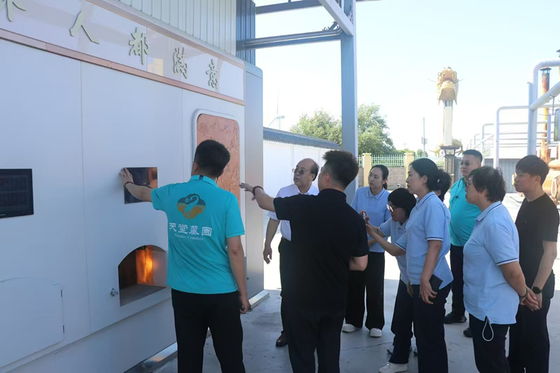 在天堂墓園,考察了骨灰禮儀告別廳,無煙焚燒區(qū),節(jié)地生態(tài)葬。