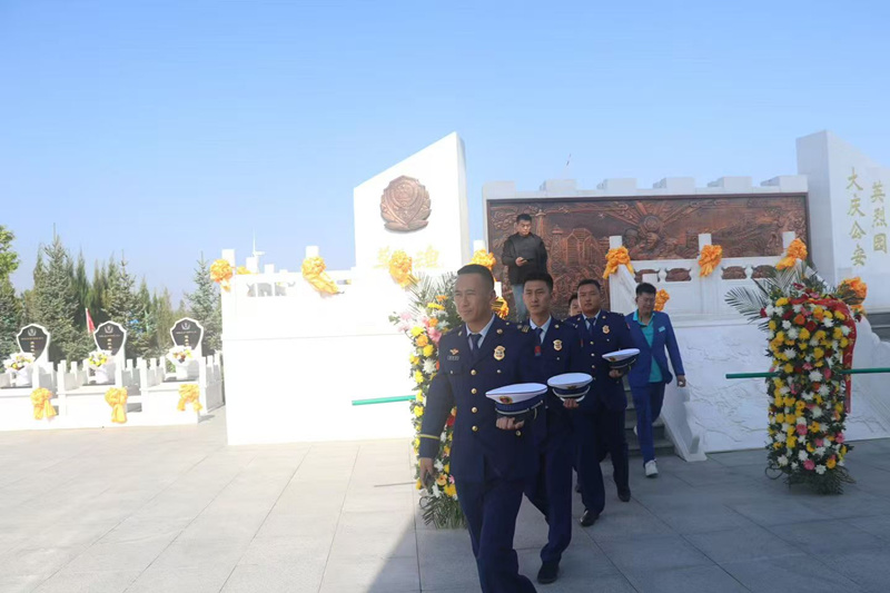 今天是烈士紀(jì)念日,讓胡路區(qū)消防大隊(duì)來天堂墓園執(zhí)行保衛(wèi)大慶公安局祭祀公安英烈活動(dòng)。