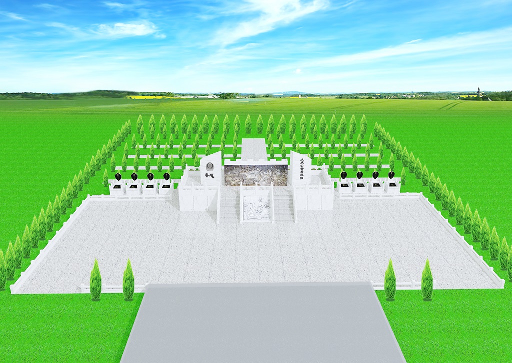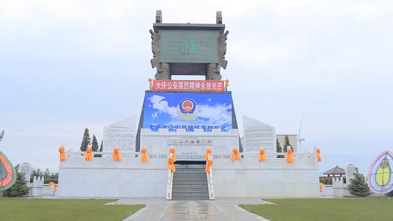 大慶公安英烈園座落于大慶市讓胡路區(qū)天堂墓園內,由天堂墓園有限公司獨資捐建,整體設計以“肅穆、莊重、簡潔、大氣”為總基調,將大慶市公安局和公安英烈有關信息融入設計理念之中,體現(xiàn)公安特點,突出紀念意義。英烈園位于整個墓園的中軸線上,整體呈南北向的長方形形狀,由墓前廣場、主體形象墻和英烈墓地三部分組成,英烈墓地560平。四周環(huán)種柏樹70棵,代表建局以來因公犧牲的70位民警,寓意英烈精神松柏長青。